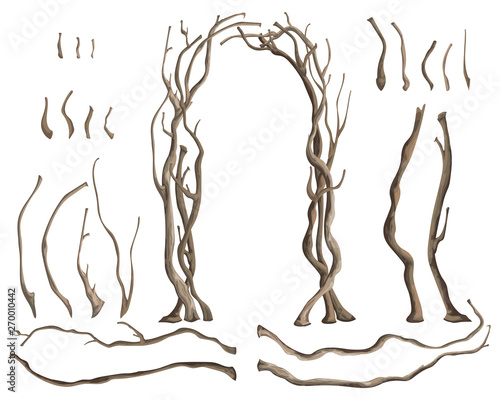 The watermark will not be included on Wall mural.: Rustic arch with tree branches and isolated design elements on white background - vector illustration