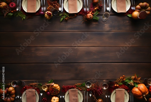 The watermark will not be included on Wall mural.: Rustic thanksgiving table setting with copy space