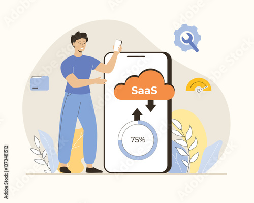 Wall mural : Saas concept, software as a service - cloud computing and storage, online subscription to programs - f