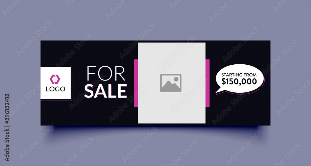 The watermark will not be included on Wall mural.: Sale facebook cover page timeline web ad banner template with photo place modern layout black backgr