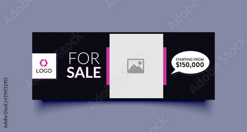 Wall mural : Sale facebook cover page timeline web ad banner template with photo place modern layout black backgr