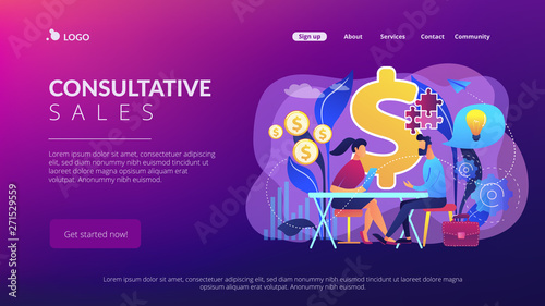 Wall mural : Salesperson suggesting a solution idea to consumers problem - consultative sales, customer-oriented s