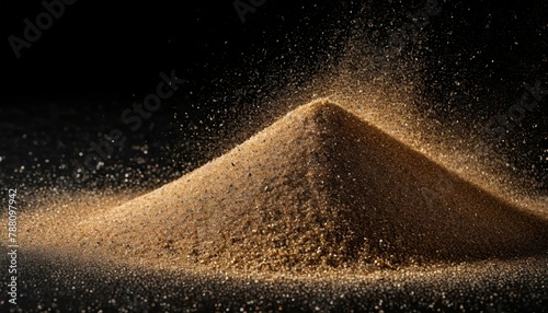 The watermark will not be included on Wall mural.: Sand scattered on a black background, each grain illuminated to reveal its intricate texture and sha