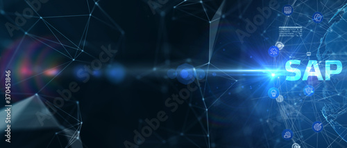 Wall mural sap system software automation concept on virtual screen data center. business, modern technology, i