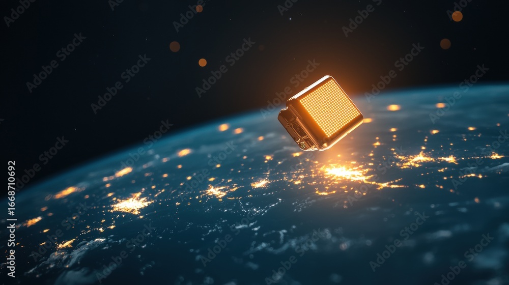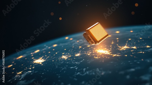 Wall mural : Satellite digital map interface with satellite based geolocation technology highlighted -