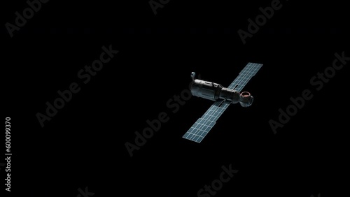 Wall mural satellite in orbit. an artificial satellite of planet earth levitates in space. have an alpha channe