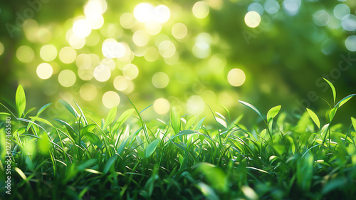 The watermark will not be included on Wall mural.: Save the world and environment concept with earth resting on green grass in a soft bokeh background