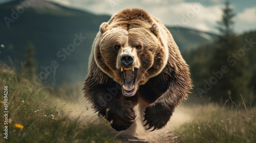 The watermark will not be included on Wall mural.: Scary large bear running and chasing