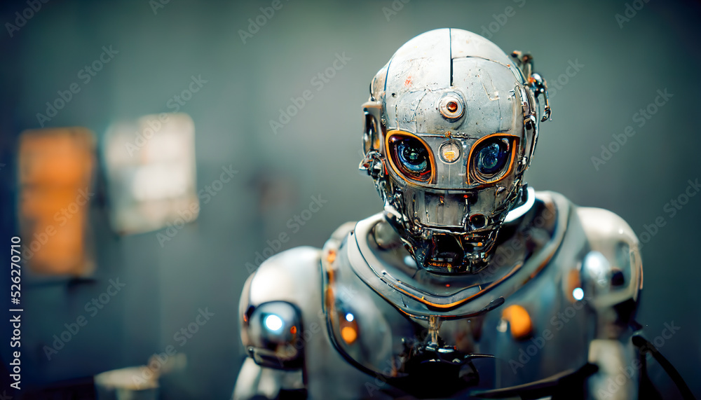 The watermark will not be included on Wall mural.: Scary robot android - old metal, mechanisms, gears