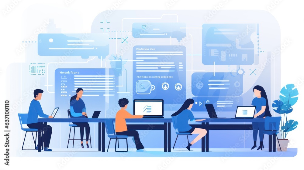 Wall mural scene depicting a team of developers working on mobile app development, coding for ios or android pl - Wall murals Wall mural scene depicting a team of developers working on mobile app development, coding for ios or android pl - Wall murals
