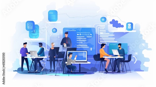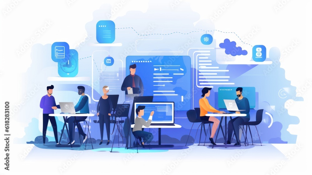 Wall mural scene depicting a team of developers working on mobile app development, coding for ios or android pl - Wall murals Wall mural scene depicting a team of developers working on mobile app development, coding for ios or android pl - Wall murals