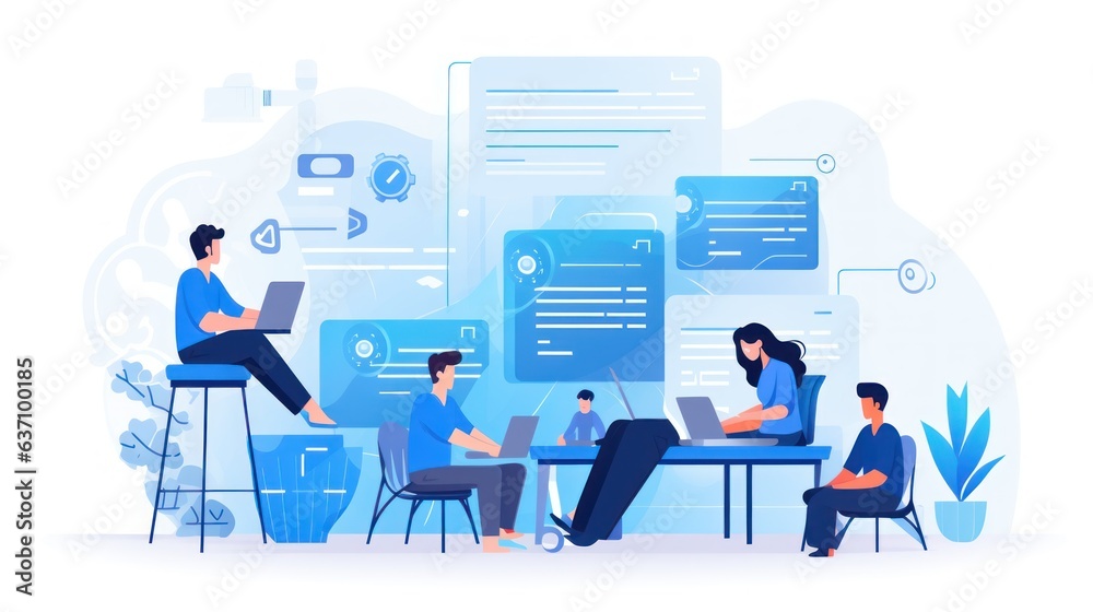 Wall mural scene depicting a team of developers working on mobile app development, coding for ios or android pl - Wall murals Wall mural scene depicting a team of developers working on mobile app development, coding for ios or android pl - Wall murals