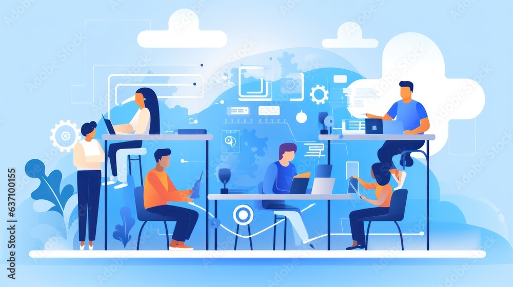 Wall mural scene depicting a team of developers working on mobile app development, coding for ios or android pl - Wall murals Wall mural scene depicting a team of developers working on mobile app development, coding for ios or android pl - Wall murals