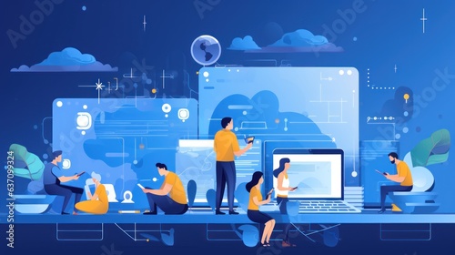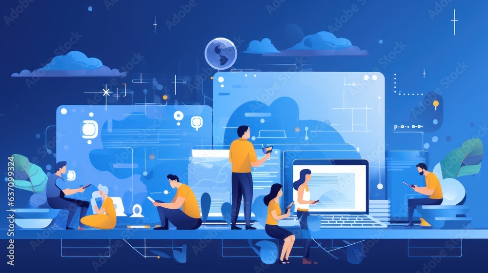 Wall mural scene depicting a team of developers working on mobile app development, coding for ios or android pl - Wall murals Wall mural scene depicting a team of developers working on mobile app development, coding for ios or android pl - Wall murals