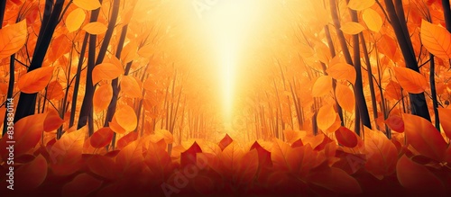 Wall mural scenic view featuring yellow trees, green grass, and sun in a park with colorful foliage. includes f