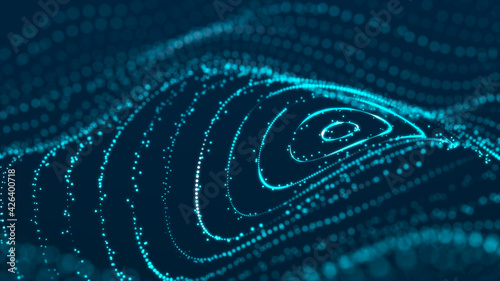 Sci-fi background - digital wave with many particles - big data visualization - template for festive prWall mural