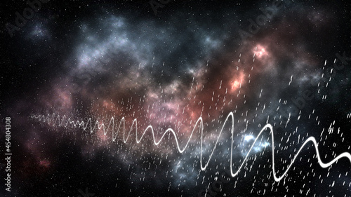 Wall mural : Sci-fi concept image illustration - unknown origin radio signal waves coming out from deep cosmos spa