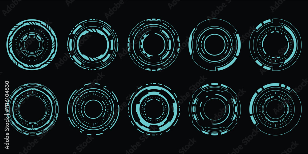 The watermark will not be included on Wall mural.: Sci-fi futuristic circle hud dashboard display virtual reality technology screen - user interface set