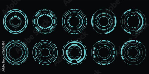 Wall mural sci-fi futuristic circle hud dashboard display virtual reality technology screen. user interface set