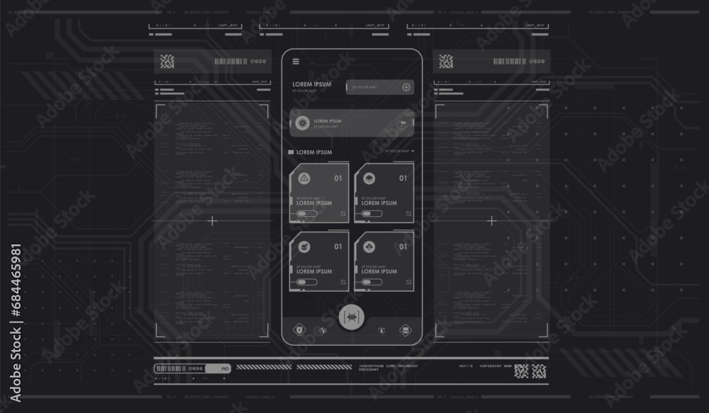 The watermark will not be included on Wall mural.: Sci-fi futuristic hud dashboard display virtual reality technology screen - game ui screen, abstract