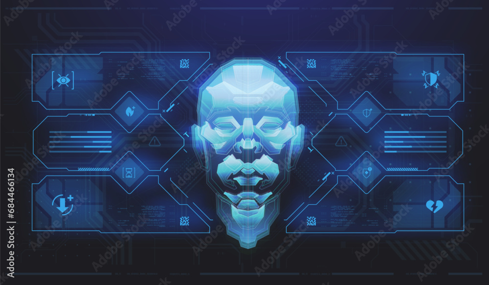 The watermark will not be included on Wall mural.: Sci-fi futuristic hud dashboard display virtual reality technology screen - game ui screen, abstract