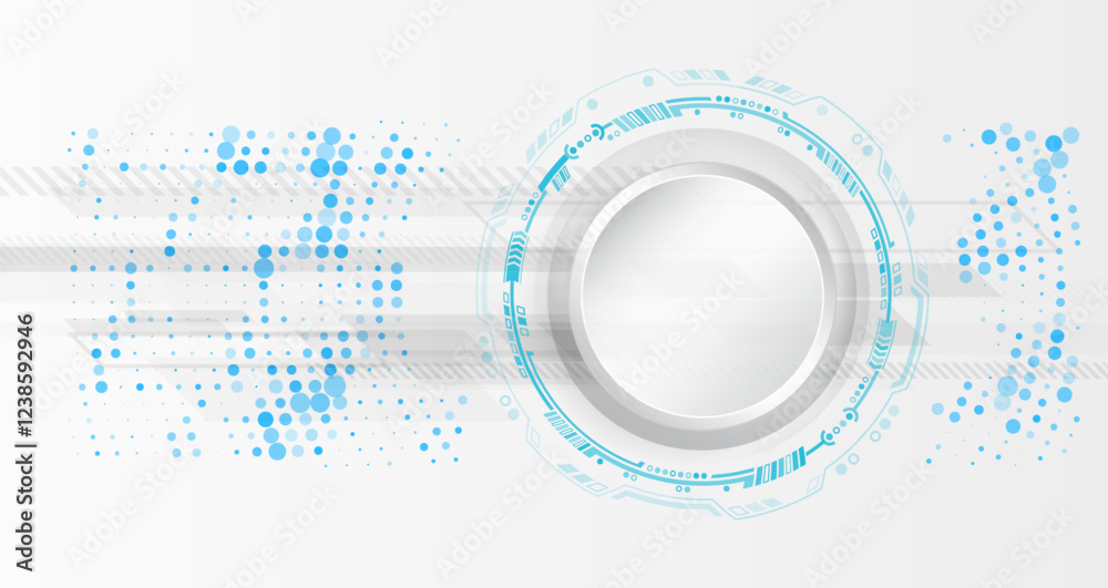 Wall mural sci-fi gray background with various technology elements. science concept, circles with shadows and l