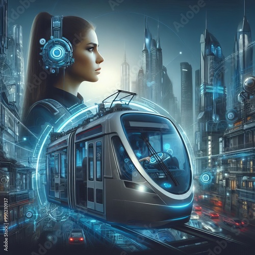 The watermark will not be included on Wall mural.: Sci fi style futuristic elements and advanced technology create