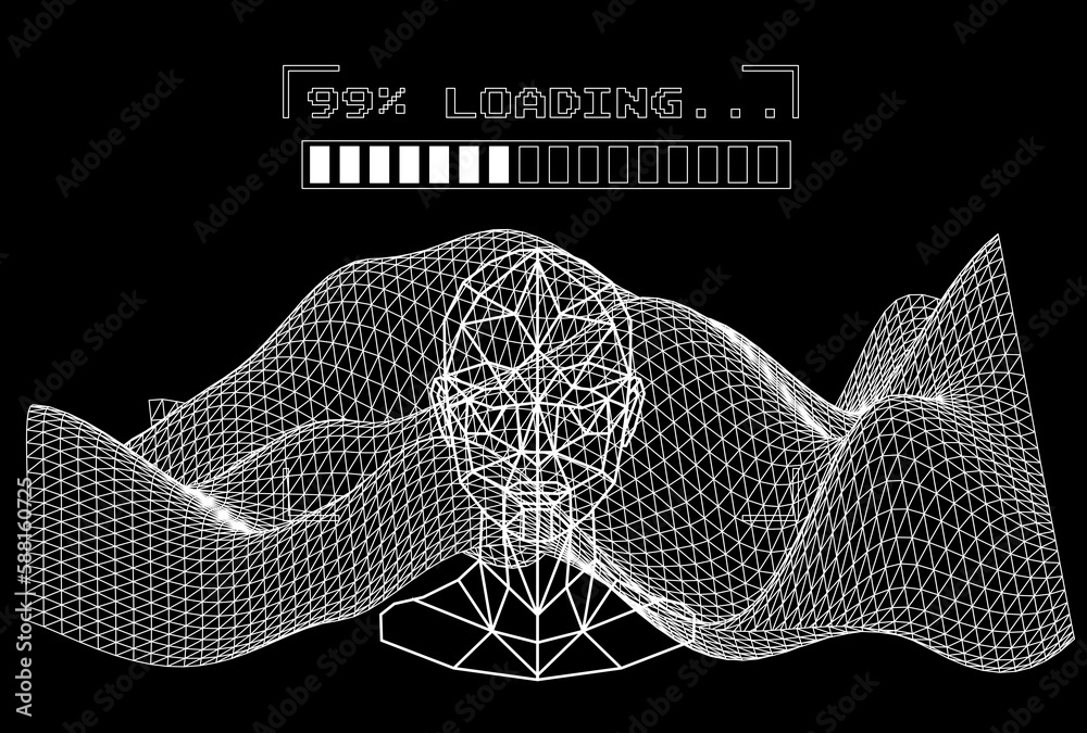 The watermark will not be included on Wall mural.: Sci-fi vaporwave 3d landscape made of a polygonal distorted grid - synthwave hi-tech style background