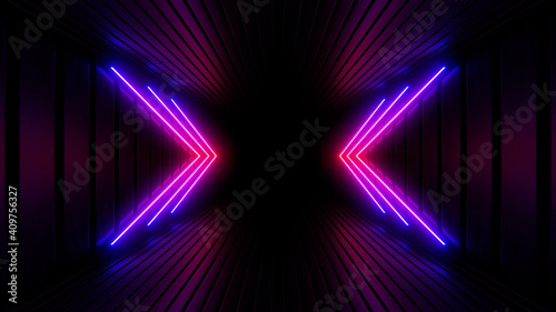 The watermark will not be included on Wall mural.: Sci fy neon lamps in a dark tunnel - reflections on the floor and walls - 3d rendering image -