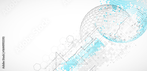 Wall mural : Science and technology background using hexagon and sphere shapes - vector -
