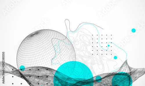 Science fiction background - abstract image of wireframe wave and sphere with plexus effect - Wall mural