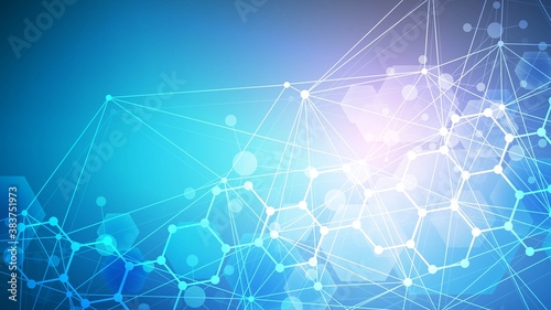 The watermark will not be included on Wall mural.: Science network pattern, connecting lines and dots - technology hexagons structure or molecular conne