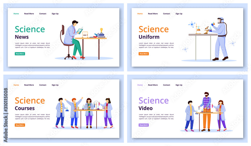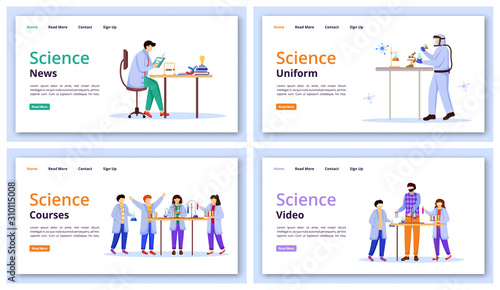 The watermark will not be included on Wall mural.: Science services landing page vector template set - modern learning technology website interface idea