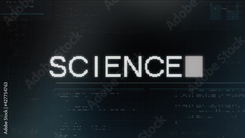 The watermark will not be included on Wall mural.: Science text box typed on retro pixelated computer screen - digital animation code -