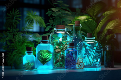 Wall mural science with samples of plants and bottles with generative ai - Wall murals Wall mural science with samples of plants and bottles with generative ai - Wall murals