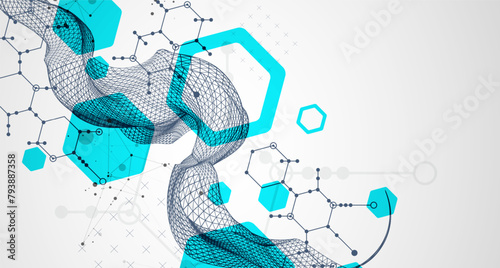 Wall mural scientific and technological background. wireframe wave with hexagons of different types on a gray g