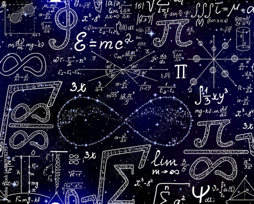 Wall mural scientific vector seamless pattern with mathematical signs, calculations and formulas, handwritings