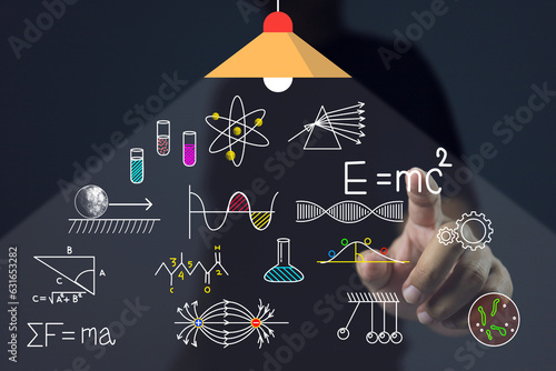 Wall mural scientist or university student is pointing on science icon under lantern light to study theory ener - Wall murals Wall mural scientist or university student is pointing on science icon under lantern light to study theory ener - Wall murals