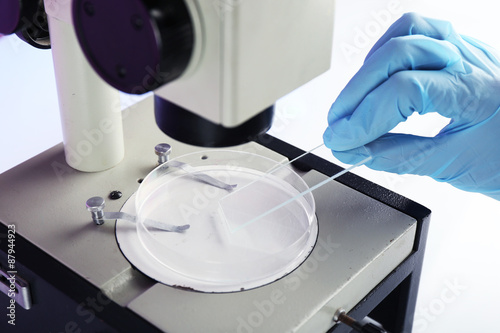 The watermark will not be included on Wall mural.: Scientist working with microscope in laboratory