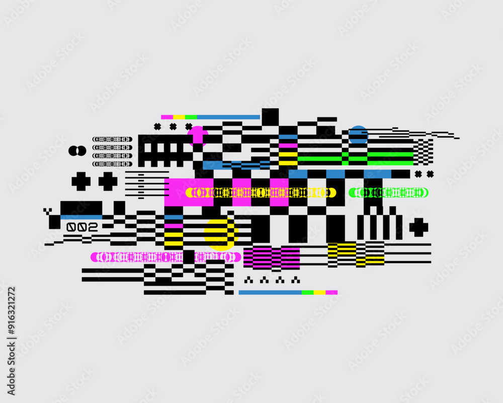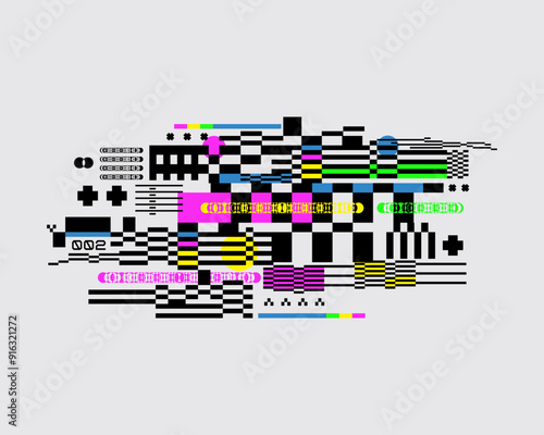 The watermark will not be included on Wall mural.: Screen glitch error no signal chaothic grid pattern background vector layout texture poster t shirt