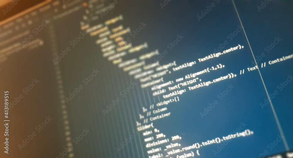 The watermark will not be included on Wall mural.: Screen of flutter application developing code - lines of code on computer screen