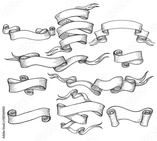 Wall mural : Scroll sketch - vintage hand drawn banner and sketched swirl ribbons vector illustration