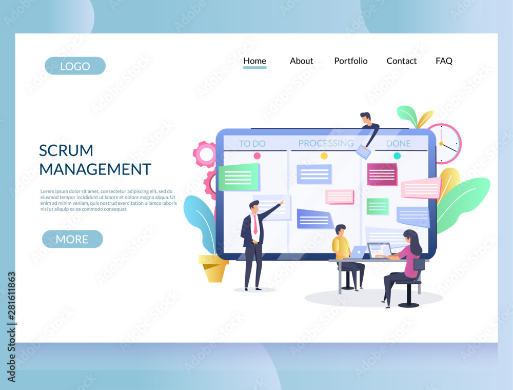 The watermark will not be included on Wall mural.: Scrum management vector website landing page design template