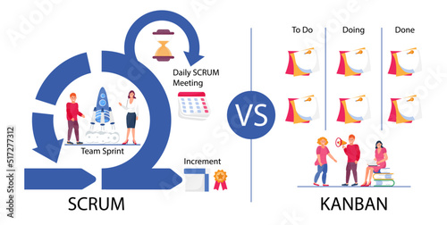 The watermark will not be included on Wall mural.: Scrum vs kanban concept vector - difference between two framework methodology -