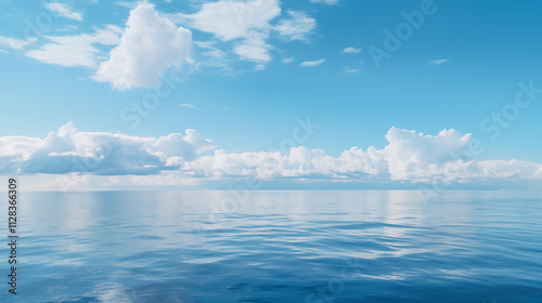 Wall mural sea landscape. sky over calm sea. blue sea and sunny sky on horizon over calm water