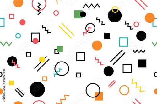 Wall mural seamless, abstract background pattern made with geometric shapes in memphis style. colorful and play