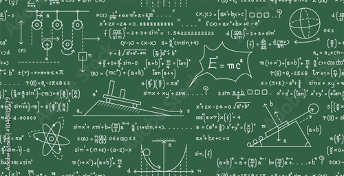 Seamless blackboard science principles calculation background formula - Wall mural