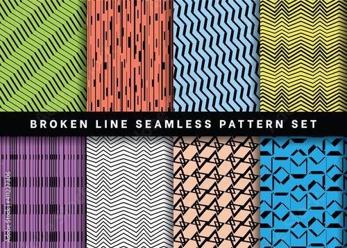 The watermark will not be included on Wall mural.: Seamless broken line pattern collection, set of geometric broken line pattern vector on colorful bac