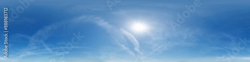 Wall mural : Seamless cloudy blue sky hdri 360 panorama with zenith and beautiful clouds for use in 3d graphics o