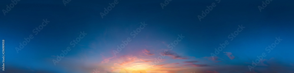 Wall mural : Seamless dark sky after sunset hdri panorama 360 degrees angle view with beautiful clouds with zenit
